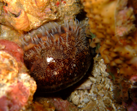 These 2 are snails as well - but with houses The left one is the commonly known porcelain snail, the other one has also a cats name. Take notice of the thin mantle they are waring around their beautiful houses. |