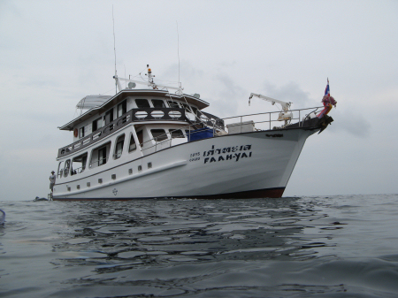 In November 2007 Anette and I went to Thailand. The first 8 days I wanted to go out on a liveaboard to dive in the Mergui archipelago in the Andaman sea off Burma. From Phuket it takes 5 hours to reach the bordercity Ranong where the diveboat "Faah Yai" was anchored. It then crossed the borderriver to Kawtchaung (Port Victoria). And there we saw the hole Myanmarian dictatorial bureaucracy unfolded. We had to deliver 3 new passport photos and 3 scanned copies of our passports. And the very passports were confiscated during the hole trip. Furthermore these officials demanded 200 USdollars in brand new banknotes from each of us to fill in the generals ever hungry pockets. I felt really bad about the hole charade, and as this wasn't enough, they sent a controlling spy with us on the boat!!! Well, the diving was good, and so were the ordinary people we met - but may the generals rot in Hell! The remotest island we dove was Black Rock, about 175 km to the north. The furthest out westward we came was North Twin, about 100 km from land. The southernmost island was Western Rocky. And now let's get the hair wet! (;o) |