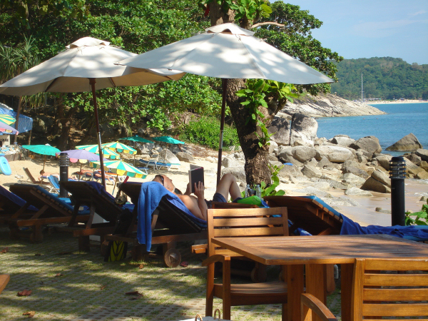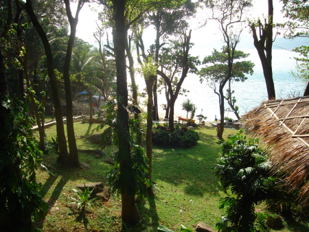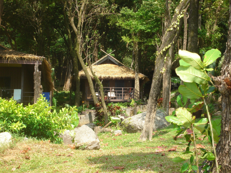 Anette and I stayed at the Baan Krating hotel "Jungle beach", and it was really a former jungle on a hillside sloping down to a little bay. Some of the trees were removed to make room to the cottages - 5 near the beach and some more further uphill. It is extremely quiet and peaceful because the hotel area is situated at the end of a 2 km long road, winding its way along the rocky coast westward from "Royal Yacht Club". It's very recommendable if you seek peace and quiet. |