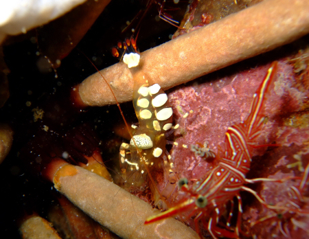 ![]() Anemone shrimp and Cleaner shrimp. The left shrimp is a Periclimenes brevicarpalis and the other a Rhynchocinetes durbanensis...