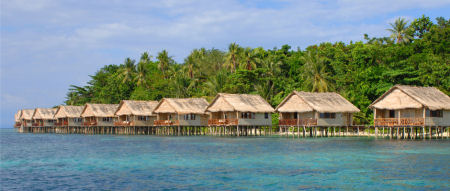 Anette og jeg var i Indonesien marts 2015. De 2 steder er først en ø i Raja Ampat på vestspidsen af Ny Guinea, som hedder: "Papua Paradise Eco Resort." (nederst) Det andet sted er en lille ø ud for nordspidsen af Sulawesi, som hedder: "Gangga Island Resort & Spa." (til højre)